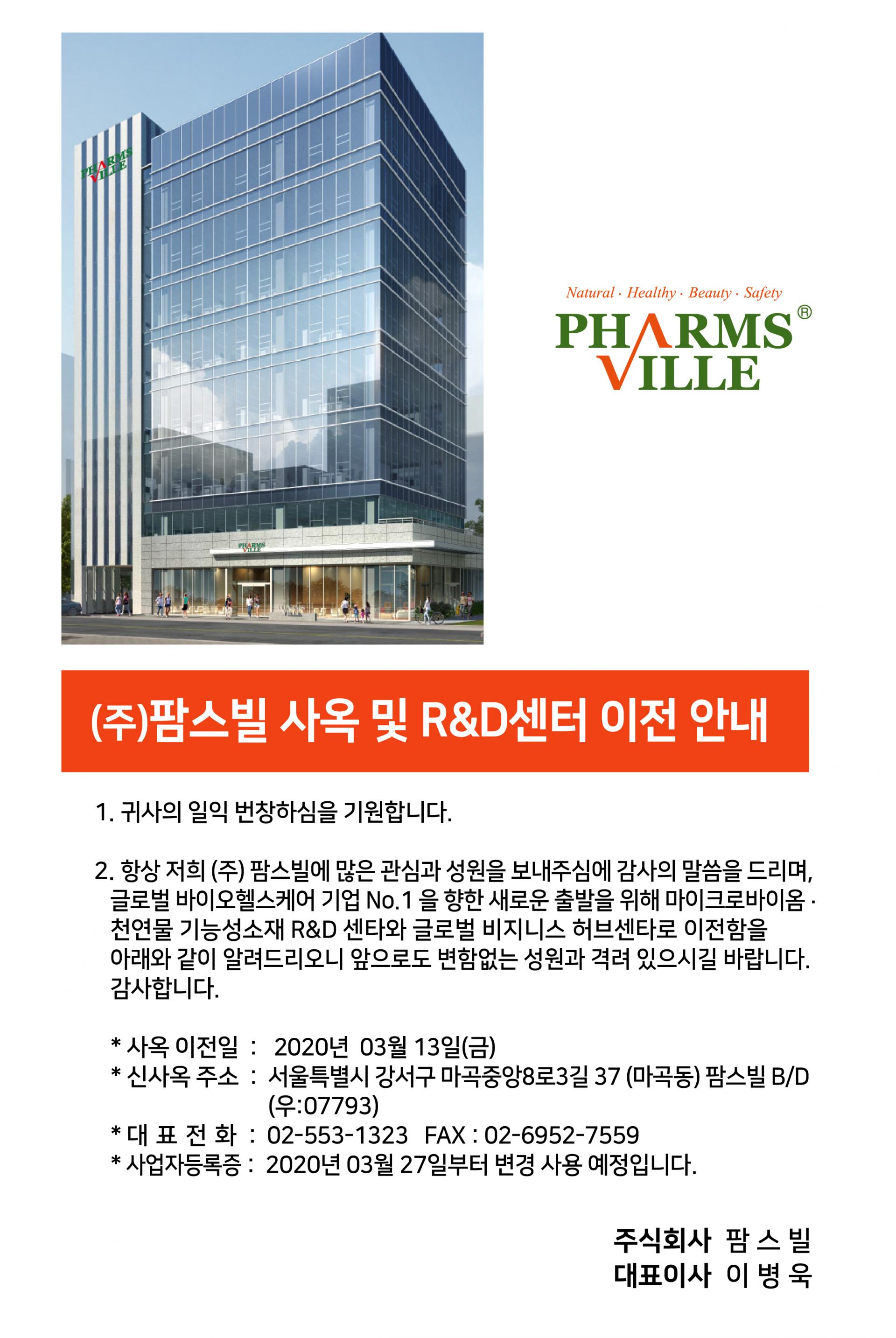 공지 (주)팜스빌 사옥 및 R&D센터 이전안내
